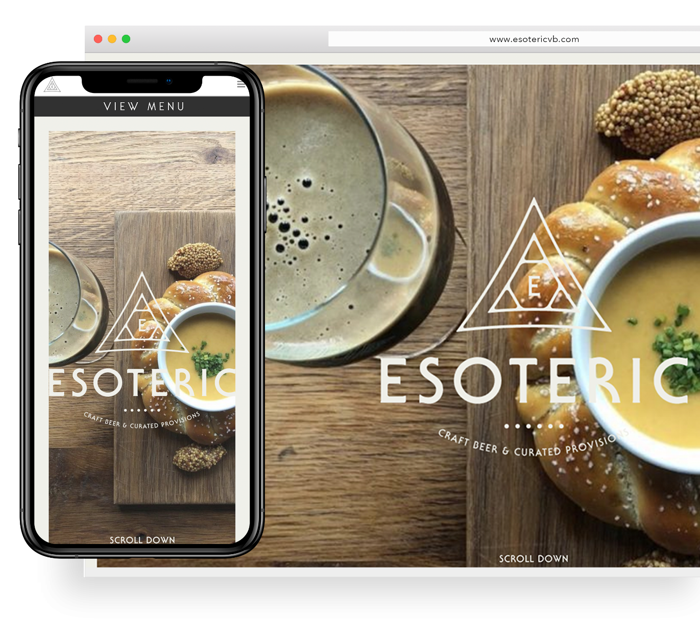 As part of the branding process, we worked with Esoteric owners Tim and Christina Chastain to design a website that reflects their hip and modern style with an eclectic flair. A cool fact about their restaurant is that it’s listed on the Virginia Beach Historical Registry, and the building maintains its 1920’s architecture and craftsmanship. We brought elements of the building’s historic interior into their website design.