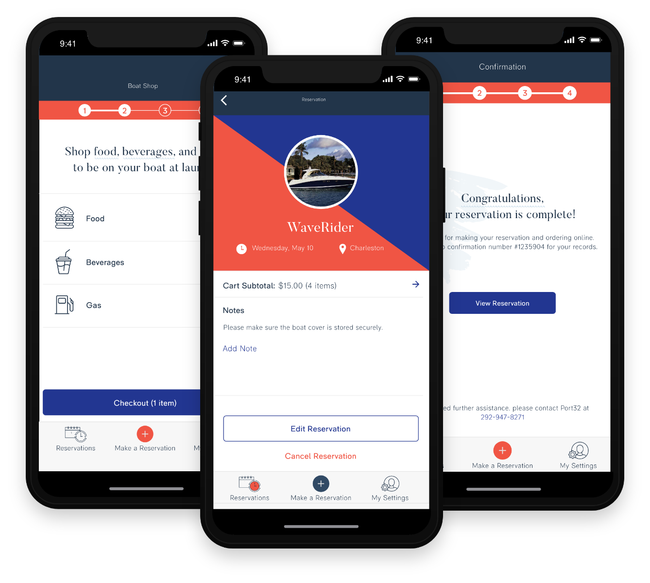 Most notably, we built a custom reservation management system and mobile app. Originally, PORT 32 was using three disparate systems for reservations, payment processing, and boat management. As a result of our work, we streamlined all business processes into one single integrated cloud-based system. Now, PORT 32 has a single platform for reservation management, customer billing, and member management for all four Florida based marinas.