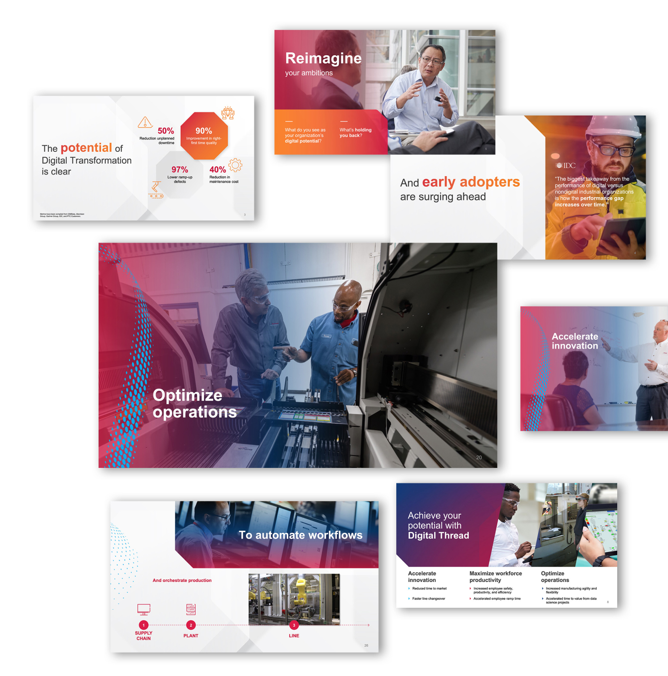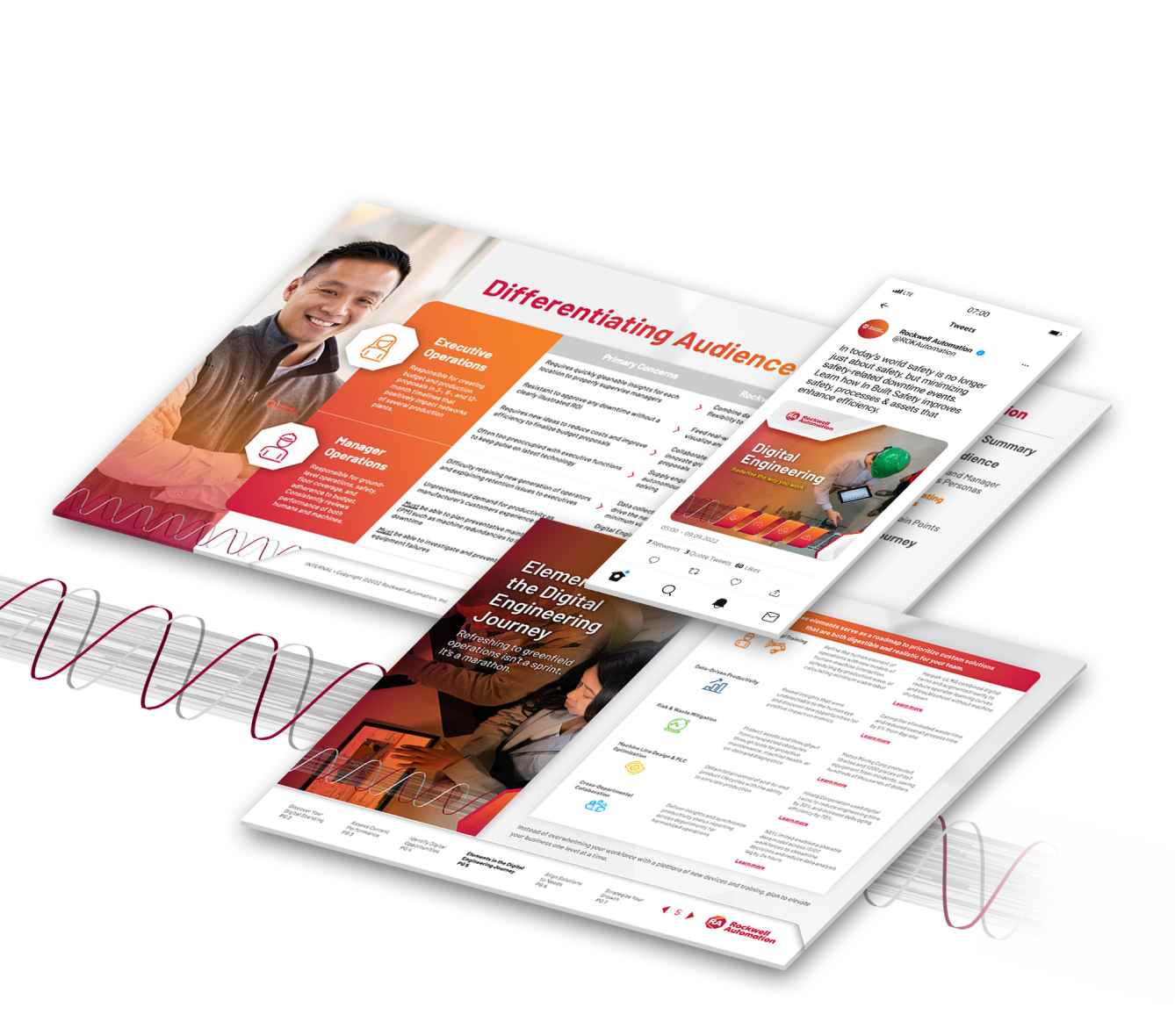 For the Digital Engineering campaign we collaborated with Rockwell starting from the earliest stages of the process. We worked within the overall Rockwell brand to create a campaign theme with distinct visual elements. Then we extended the theme to a pitch deck, social posts, digital ads, and an ebook.