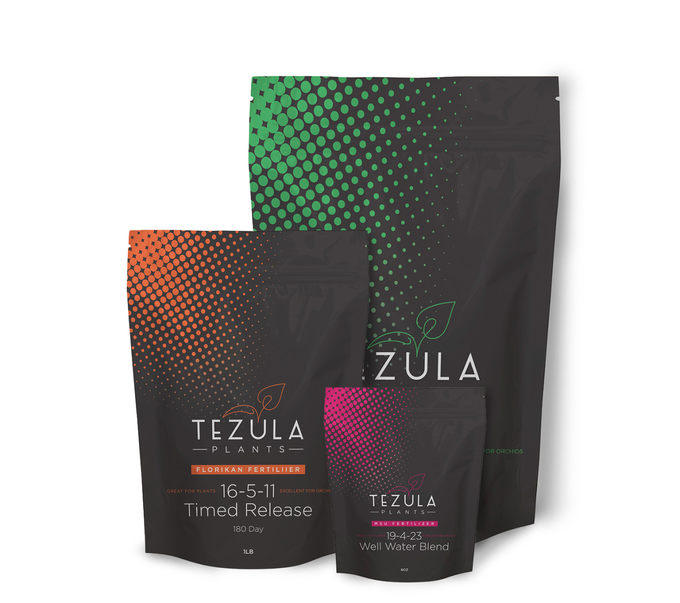 A lifelong orchid enthusiast, the founder of Tezula Plants eventually concluded that mainstream products for orchids and other exotic plants fell short of peak quality. He started making his own fertilizers and growing mediums, eliciting enough success that he added them to his plant e-commerce site. They contacted us to design a brand identity for a whole family of botanical products.