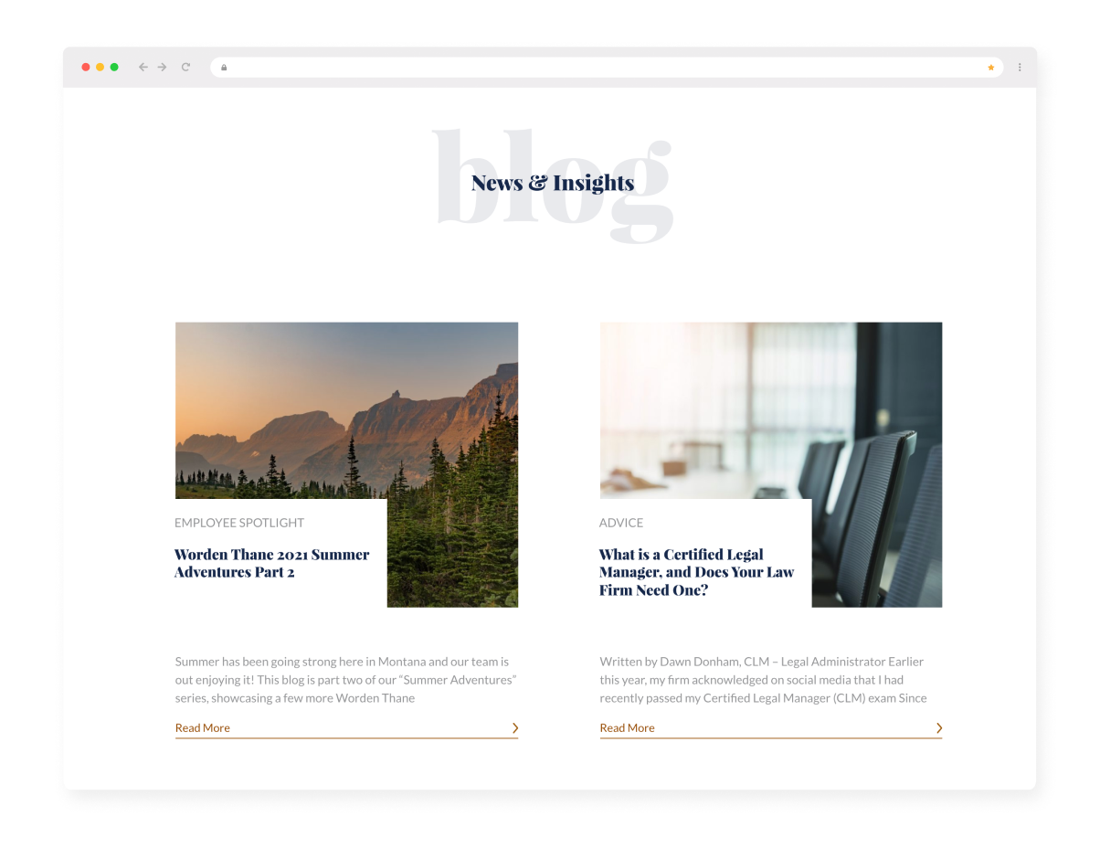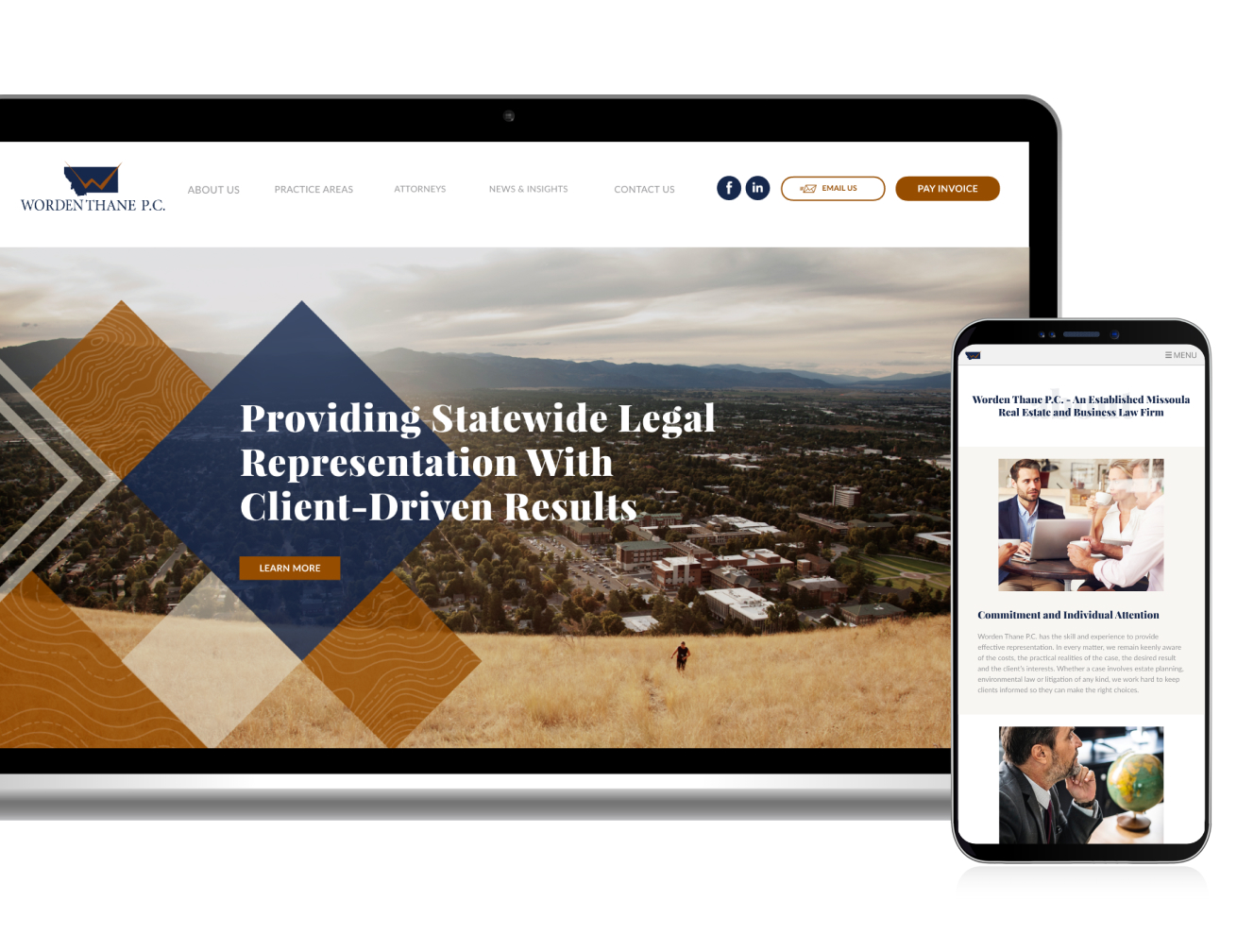 For close to a century Worden Thane P.C. has represented the community of Missoula, and beyond in all legal matters. While putting their clients first, and prioritizing results, Worden Thane P.C. are statewide experts in real estate, business, and litigation law. With a firm recognized for success, a digital presence was needed to mirror the same excellence and credible reputation.
