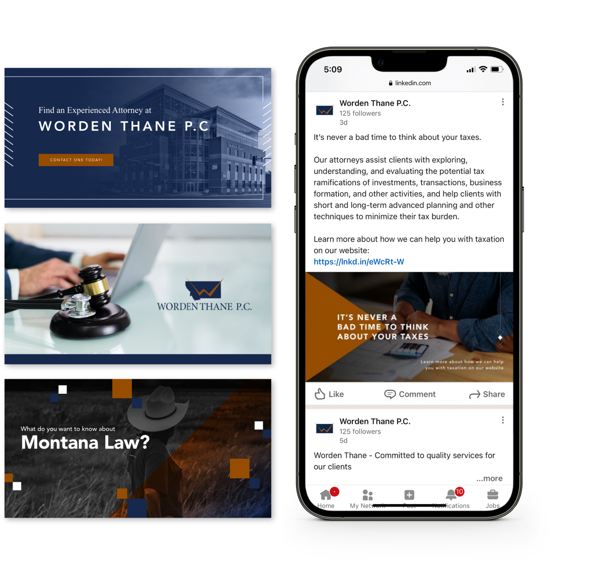 After the web design team worked from the question of “Who is Worden Thane?”, the marketing team asked the question “How can Worden Thane grow?” The answer - a robust social media strategy across multiple platforms. This strategy includes multiple custom designs, carefully crafted copy, and a posting schedule based on insights and engagement.